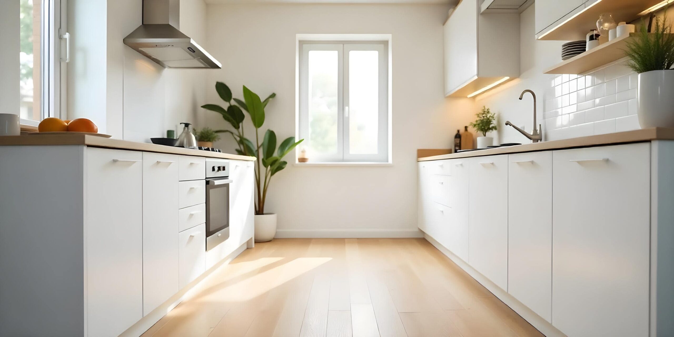 Clean lines, simple fixtures, and neutral tones.